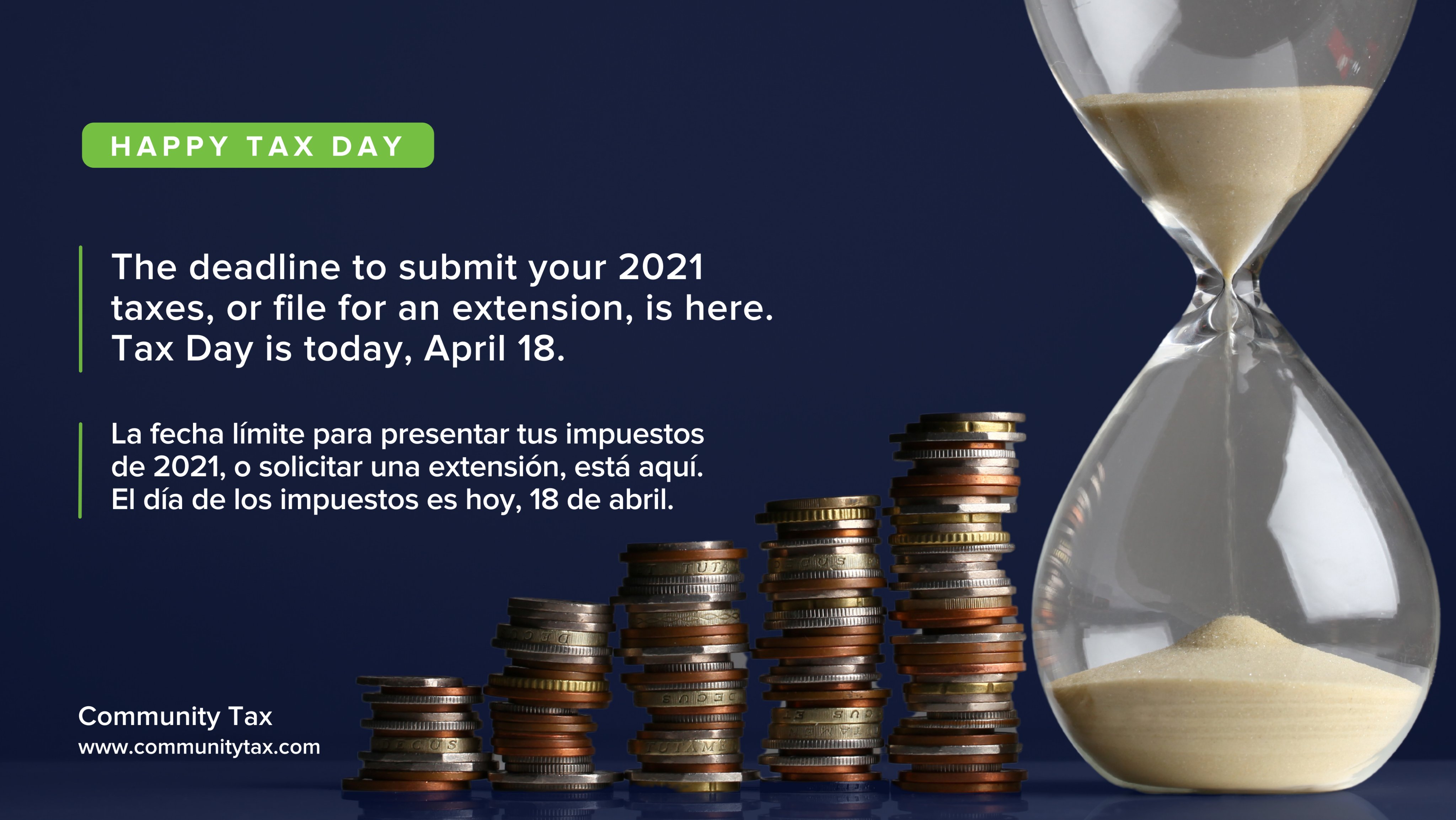 Ese período fue ampliado. La fecha límite para presentar tu declaración de impuestos federal para el año tributario 2021 era el 18 de abril de 2022. Si se venció el plazo y no solicitaste una extensión es muy importante que presentes tu declaración de impuestos tan pronto como sea posible.